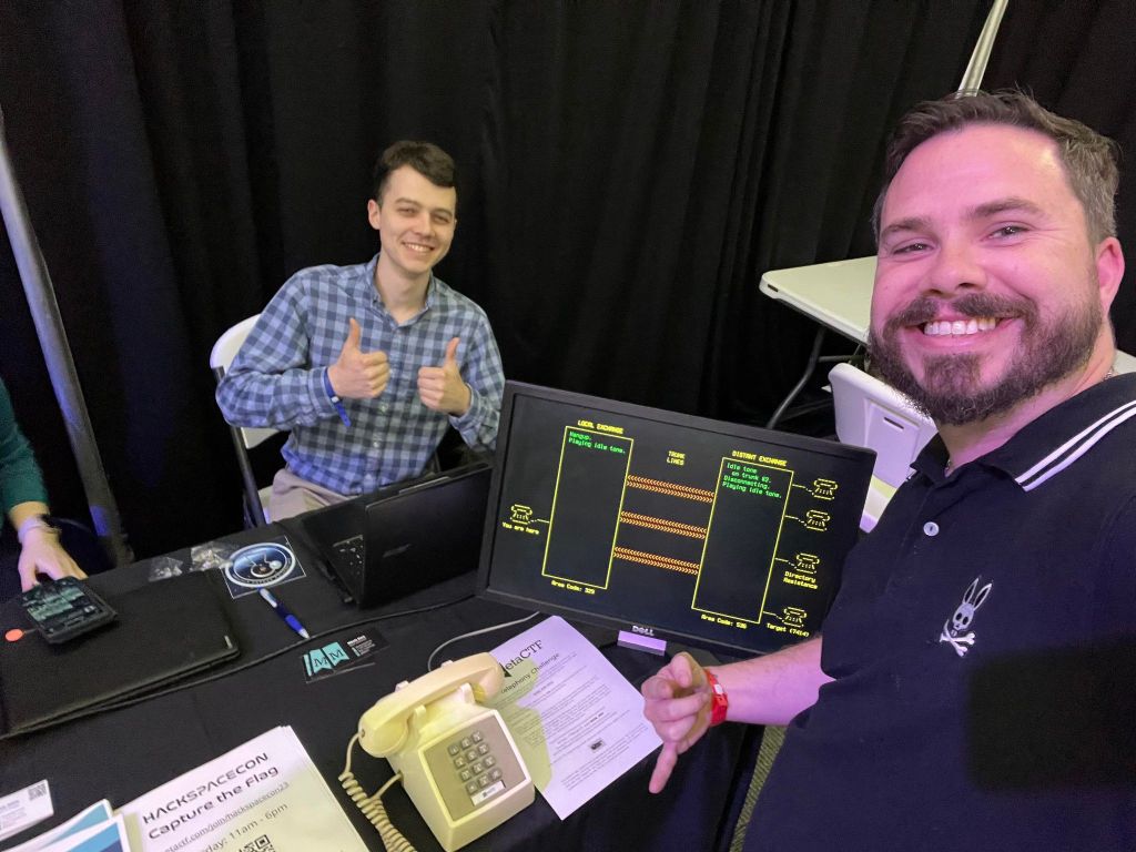 On the second day I took a leap and left my comfort zone. I joined forces with 3 fellow attendees to compete in the CTF MetaCTF was hosting. None of us had ever met, but it wasn’t until the clock ran out and we closed our laptops that we realized we didn’t even know each other’s names and finally formally introduced ourselves. I believe that every one of us had an absolutely amazing time. The CTF had flags for all levels. I focused my efforts on the encryption part since that is what I was most comfortable with. However, my absolute favorite flag was the Phreaking challenge. I always read about Phreaking and was fascinated with the subject, but sadly I have not had a landline in 20 years so I guess I will have to scratch the itch at CTF events with novelty flag challenges.
