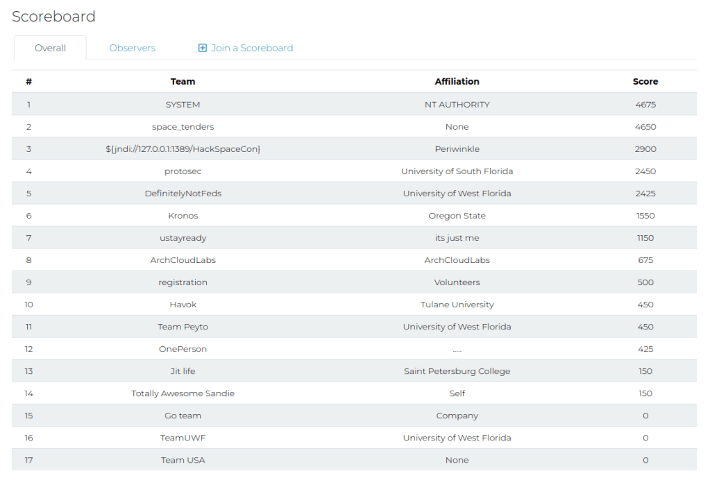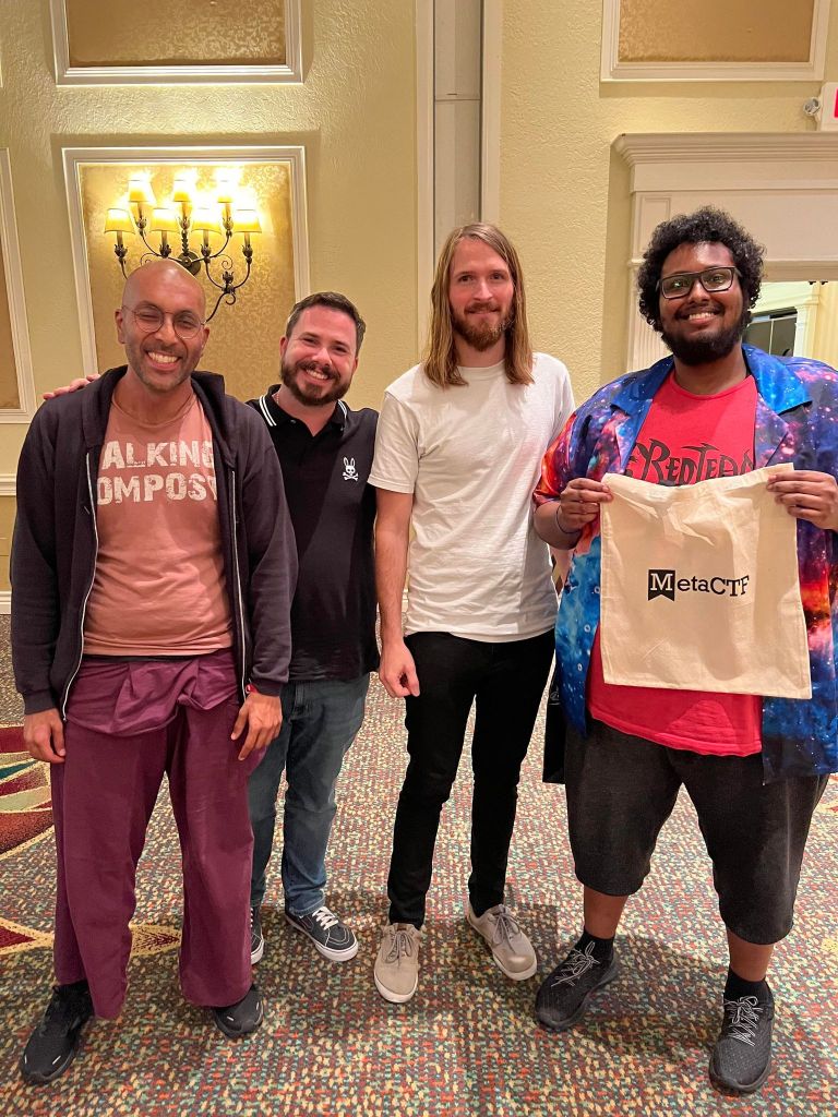 Our Team took second place in the MetaCTF competition. I had an absolutely wonderful time working and learning from my teammates. In the past, I was always hesitant to jump into CTF competitions, but I had such an amazing experience I am now looking forward to doing CTFs on a regular basis.